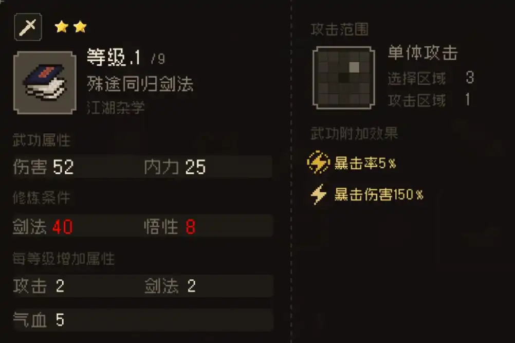 殊途同归剑法:江湖线离开江夏客栈时由王害风赠送