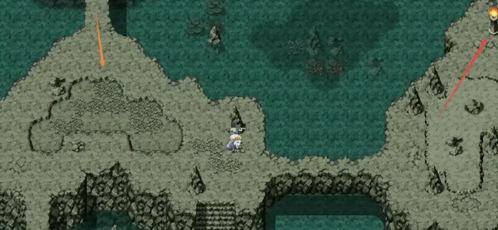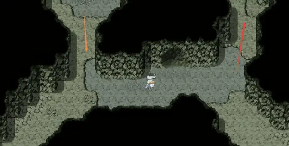 洞窟的位置在地图的右下角,建议先从沙滩上来到草地,然后左转过桥后顺着墙壁上的藤蔓下来,就能顺利找到入口,进入到洞窟后和左边的彼得对话,需要我们提交10个寒霜草,击杀洞窟里的蝙蝠就能获得,提交后一直往上走进入到洞窟的第2层,下图中橙色箭头标的就是来时候的路,我们往红色箭头走搜索里面的尸体,能得到风车村的地图,随后我们往地图的右下方走,能进入到第3层,路上会遇到NPC贝克,如果选择救他后续需要与其战斗,直接杀掉则能避免战斗;
