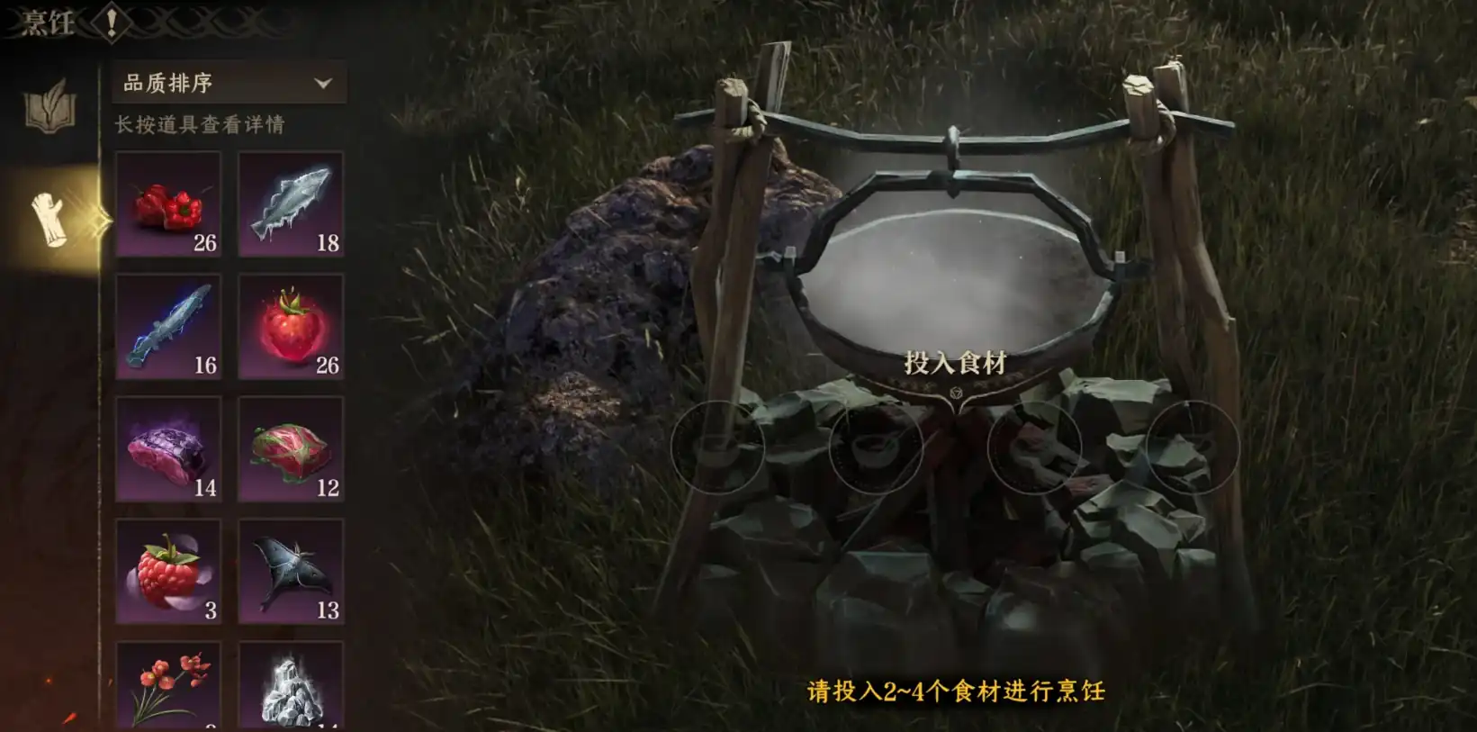 河湾地这里不仅有守卫可以挑战,还有一些食材可以收集,比如说这里盛产葡萄,可以采集到河湾地葡萄,2个葡萄加2个小麦或者1个精灵小麦,可以制作河湾地葡萄酿。