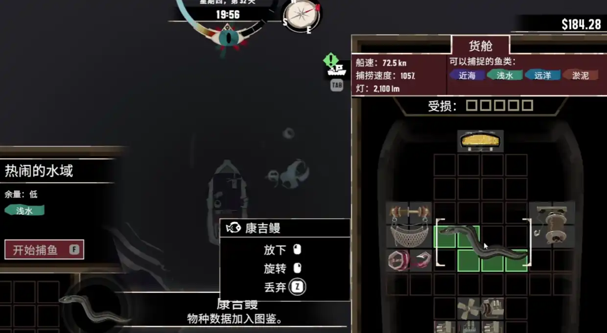 值得一提的是,如果玩家想要获取更高的捕猎概率,则不建议玩家在白天进行狩猎,因为康吉鳗在白天时,会蛰伏在沉船的深处,抑或是在洞穴之中,玩家如若想要捕捉,难度极大,还有可能惊扰克苏鲁神话鱼群,导致玩家在白天狩猎失败。