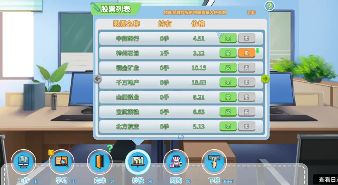 股市中有无数诱惑,尤其是在出现暴涨暴跌的行情时,玩家可能会受到市场情绪的影响,做出过于冲动的决策。然而,理性是炒股成功的根本。在《职场浮生记》的股市中,玩家应避免跟风买入那些短期内涨幅过大的股票。即使这些股票短期内可能带来巨额回报,但从长期来看,其波动性大、风险高,投资者容易因市场回调而遭遇损失。坚持稳健的投资策略,避免高风险、高收益的诱惑,理性分析每一只股票的真实价值,并根据自身的资金状况进行合理配置,是炒股成功的重要保障。