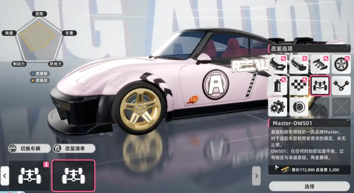 接着就是车辆的颜色,这个颜色方面也是打造专属车辆比较重要的选项,这个颜色的选择就比较多了,有些男玩家比较喜欢黑色或者白色,可以直接对整个车型的颜色进行更换,而有的玩家则喜欢粉色或者黄色,那么也是可以根据颜色的调料进行二次改装,让车辆显得更加亮眼。