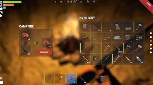 点击右上角的背包按钮,玩家可以进入制造菜单和查看可用物品列表。背包界面是玩家管理资源的核心工具,所有收集到的物品都会显示在这里。通过拖拽物品到屏幕下方的快捷栏,玩家可以轻松切换激活的物品,使操作更加流畅。