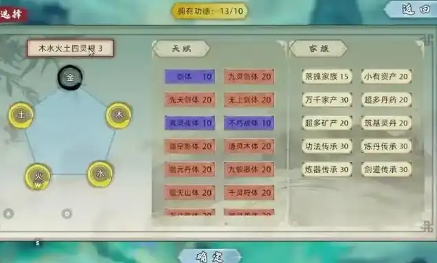 功德点用处非常多样,除了提升实力外,大家在开局的时候如果有功德点选择天赋的机会,建议优先选追求长生和经脉贯通,这两个天赋对前期发展非常有利,能大幅提升生存能力和修炼的速度。