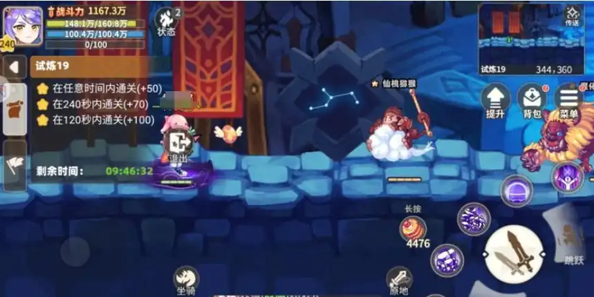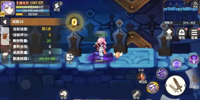 这时大家就可以利用飞翔石的多段跳跃技能,从左边跳到右边再从右边跳回左边即可躲避怪物攻击,如果中途不幸死亡,只需在原地复活即可继续挑战,这里有个小窍门是复活有倒计时,可以在倒计时还剩最后2-3秒时再复活哦,而噩梦难度下的水晶保卫战是时空裂隙中的最后一个挑战,这三个难度级别采用统一模式,但需要玩家提升战力才能守护更高难度的水晶。