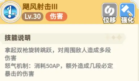 当然作为双枪的核心技能,撤步射击也是不可忽视的,撤步射击不仅能够补充怒气,还能在特定时间内增加暴击伤害,更重要的是它无需提前准备,可以瞬间发动,是逃生和攻击的利器,遇到威胁时,玩家可以通过它边退后躲避,边造成伤害,很多双枪的老玩家都擅长运用这一技能来应对各种战斗局面,最后大家注意转职后的集中技能也是双枪的一个重要技能,是一点要加上的。