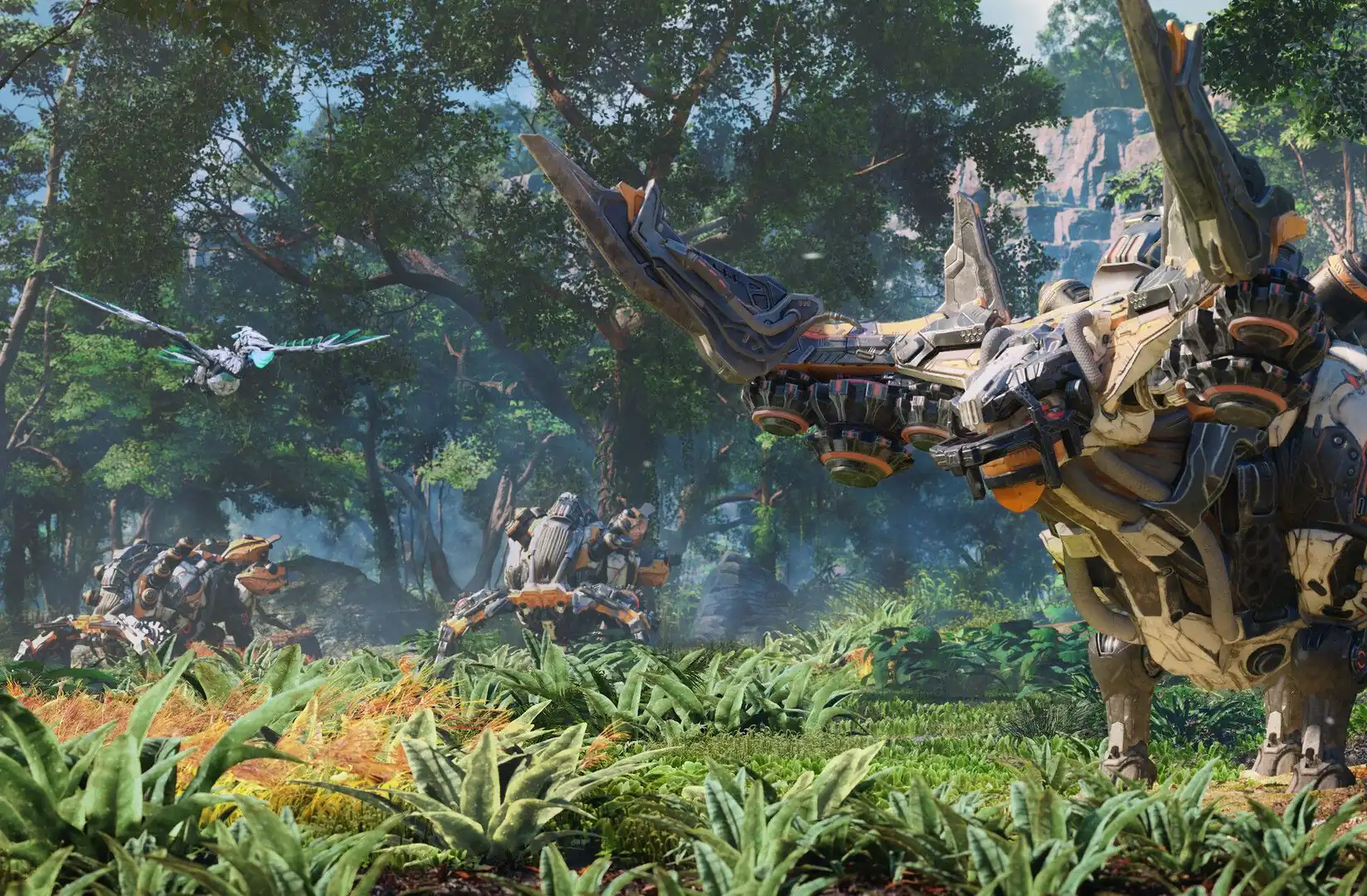 在这款游戏里面要说什么最后特色的话,那肯定就是那些有着很高的辨识度的机械生物,游戏给玩家构建了一个前所未有的世界观,而且与以往我们玩过的那些丧失题材或者是传统的末日生存类游戏不同的是这里给大家带了超乎我们想象的未来科技,机械文明这类前所未有的提前绝对让大家眼前一亮,在这里没有破败不堪的都市,你只能看到各种机械生物在原始场景种闲庭阔步。
