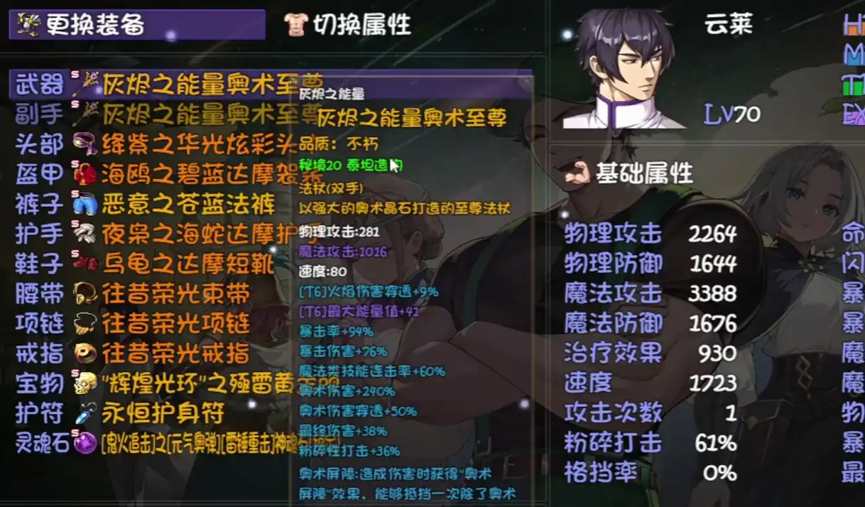 云莱是游戏内的最强法术攻击角色,在使用灰烬之杖能量时,云莱可以爆发出极高的火属性穿透伤害,但由于血量比较少的原因,他一般会作为游戏的副C角色。