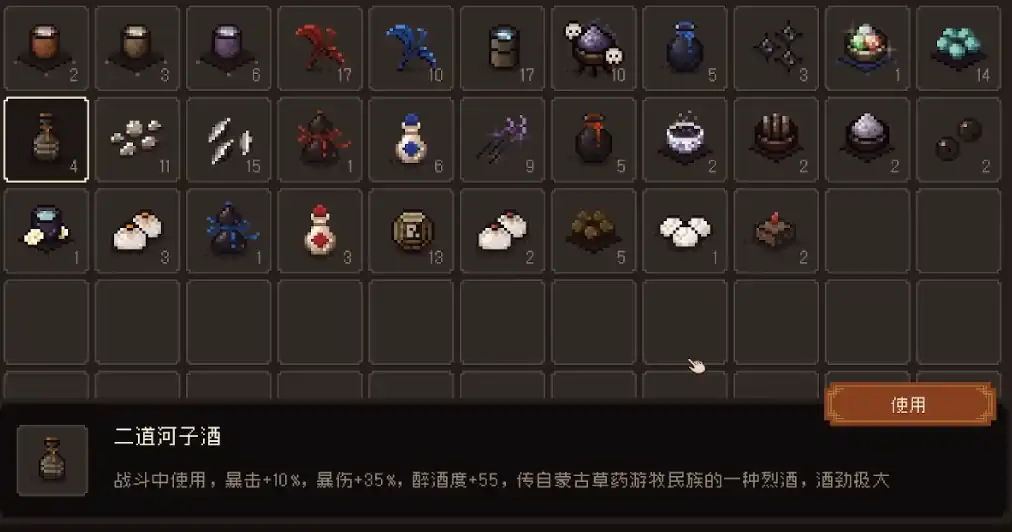 打开宝箱之后就能得到临江醉仙剑法,这是一个带有特殊伤害的剑法,不能拿常规的设定去衡量这本秘籍,想要让秘籍产生更强大的能力,那就需要通过喝酒来增加伤害的数值,醉酒程度越厉害,伤害值也就越高,最高的攻击点能达到160点,但想要学习这个秘籍也是有要求的,首先就是玩家使用的武器必须要是剑,并且剑法的等级要满足100点,另外角色的酒艺也需要修炼到100点才可以。