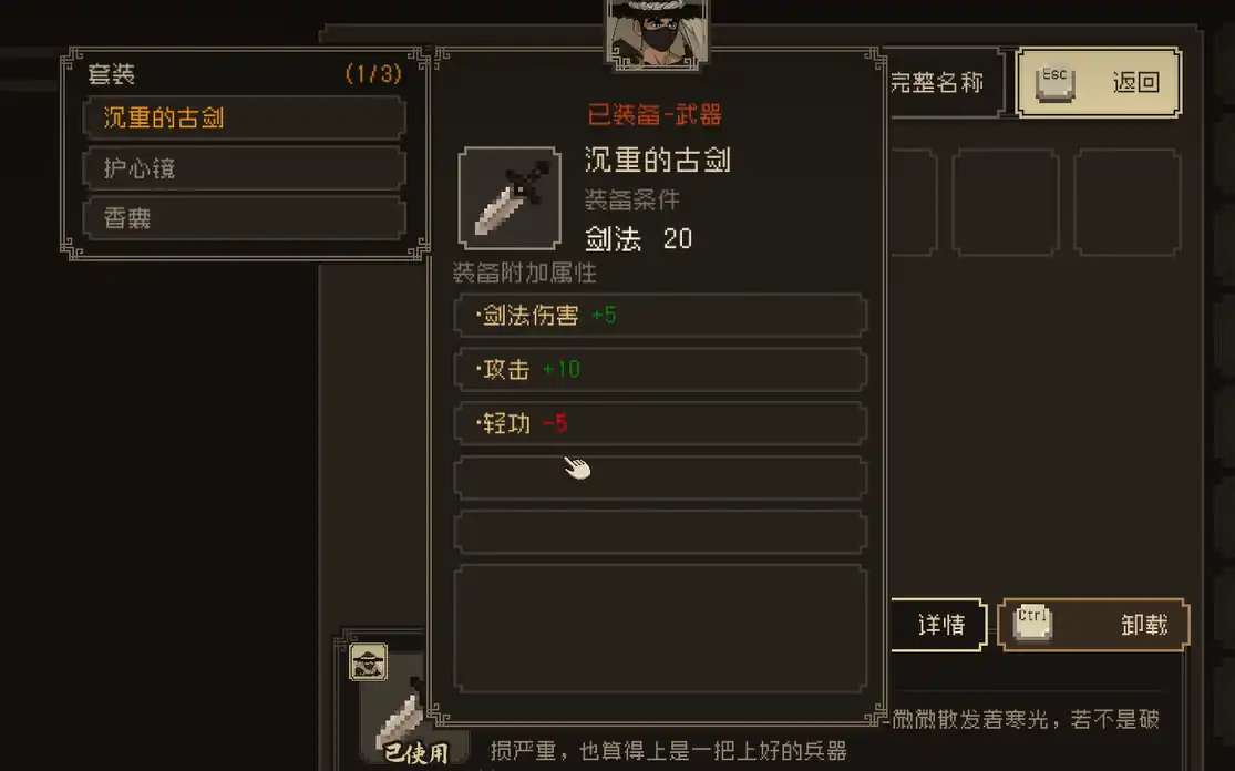 游戏一开始,你会面临选择角色背景和一些初始能力。在这里,强烈推荐选择“少室山孤儿”。因为你可以获得一把不错的武器——前提是你的轻功属性要大于31。建议你在选择数值时,优先提升轻功,这样在开局阶段你就能轻松获得这把武器,并为后续的战斗打下基础。