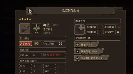 游戏中也会规定,一个人最多也只能够练30种武功,武功的选择同样也会影响到人物的战力,很多的武功都会有前置要求,其中就会包括内力要求,还有拳法等等。