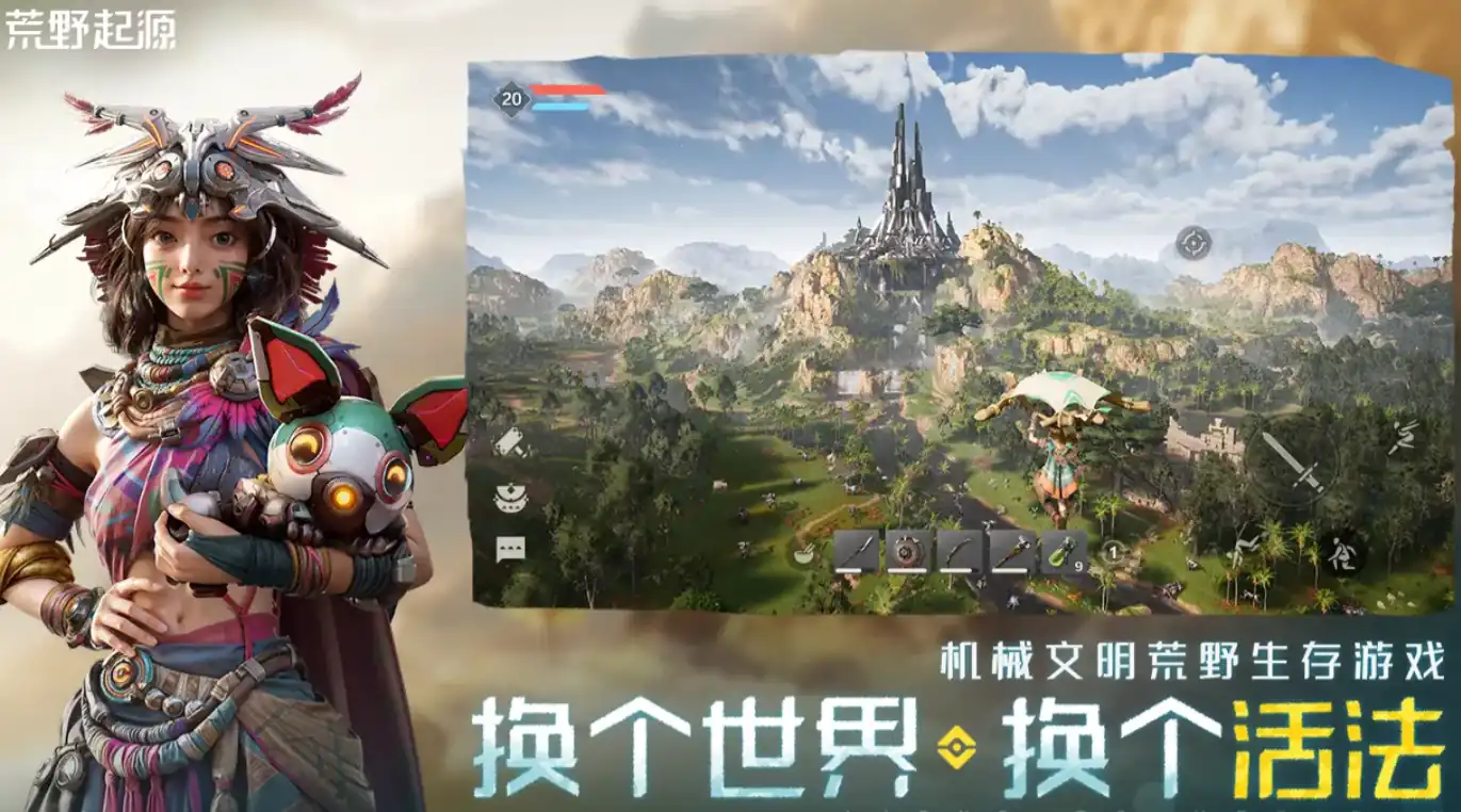 《荒野起源》为玩家描摹了一个具有割裂感的时代,在这个时代之中,由于人类的科技太过发达,并且创造出了DNA的基因工程,将机械生命体和恐龙的DNA相互融合,从而引发了世界末日,无数的恐龙怪物将人类曾经的文明完全摧毁,而现代的人类,只能够屈膝于科技并不存在的荒野之中,通过不断地升级自己的文明科技,来抵御这些外敌。