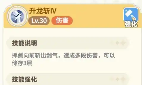 更为惊人的是当目标被这一记精准无误地击中时,还会引发一场小规模爆炸,在目标位置生成多个光柱,每个光柱都能给附近的敌人带来高达500%的基础伤害和额外的1500点伤害,这对于清理密集分布的敌人尤为有效,除了主要输出技能外,剑盾还有一项非常实用的副C技能叫做升龙斩,通过这项技能,玩家可以增强自己的支配力,并在下一次普通攻击或特定技能中使用更强大的力量。