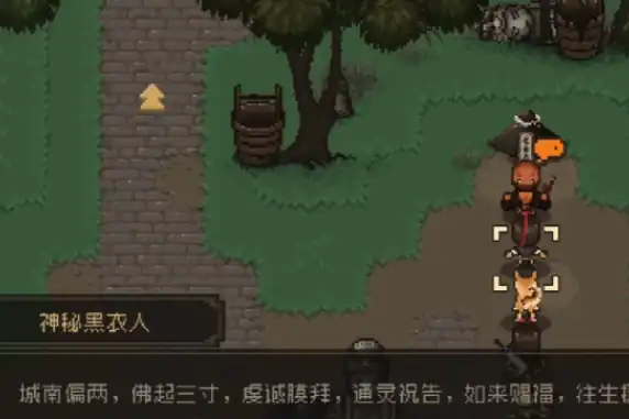 除了这个特定的角色之外,玩家还有很大的几率在城区中遇到一个神秘人,在城南会有一个身着黑衣的神秘人询问玩家字谜,谜面是城南偏西佛起三寸,很多玩家也都会发现只给出了谜面,并没有答案的选项,其实这是在指引玩家前往下一个寺庙的位置,只需要按照对方的指引前往寺庙就能开启后续的任务,在寺庙这里会有少量的铜钱可以收集,到了寺庙之后会有特定的NPC角色等待和玩家推进,后续的剧情只需要靠近即可。