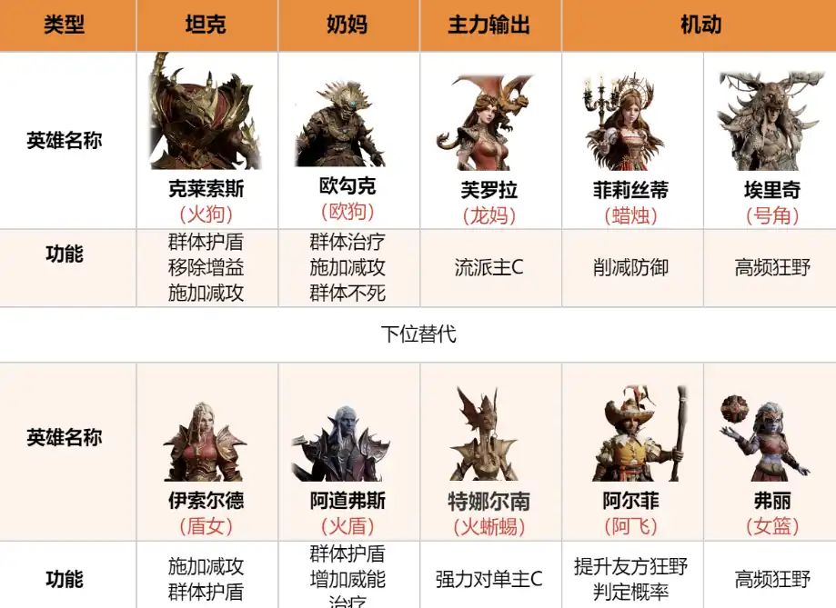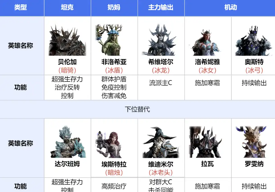 强大的阵容搭配非常多样,火毒队的搭配推荐成员厄尔丹、菲莉丝蒂、芙罗拉、罗塞尔、克莱索斯/欧勾克,厄尔丹作为前排坦克,防御和输出兼备,能抗能打还能限制敌人,菲莉丝蒂和芙罗拉组合可打出高额火伤,罗塞尔提供辅助增强生存能力,克莱索斯可群体护盾、转治疗等,欧勾克能治疗和驱散负面效果,降低敌方攻击力,冰暗队的搭配推荐成员席维塔尔、洛希妮雅、多尔切蒂斯/菲洛西亚、勒瓦妮丝、贝伦加/古・狄恩,席维塔尔是核心,爆发输出强。洛希妮雅稳定释放寒霜状态,多尔切蒂斯或菲洛西亚提供控制和辅助,勒瓦妮丝通过召唤增加输出,贝伦加或古・狄恩增强队伍生存能力。