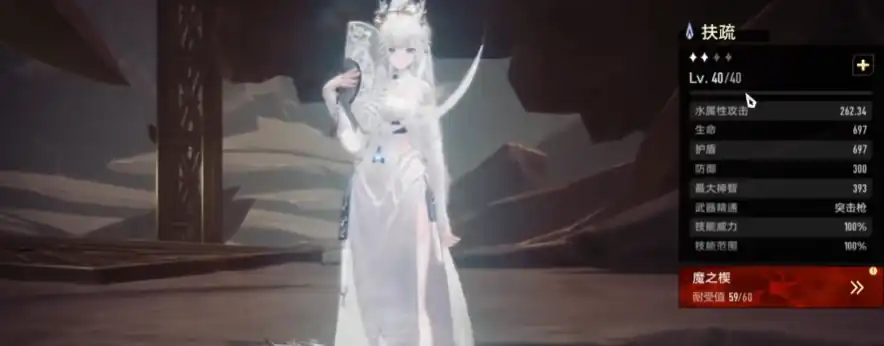 白色旗袍,手持小折扇,是偏召唤类型的角色,可以召唤云璃,最多能同时存在5个云璃,继承角色100%属性,选择周身最多3个敌人作为目标,会持续对周围人造成伤害,同时记录伤害量,每隔3秒可以将记录的伤害量转化为治疗,治疗周围的队友,并且可以回复神智。