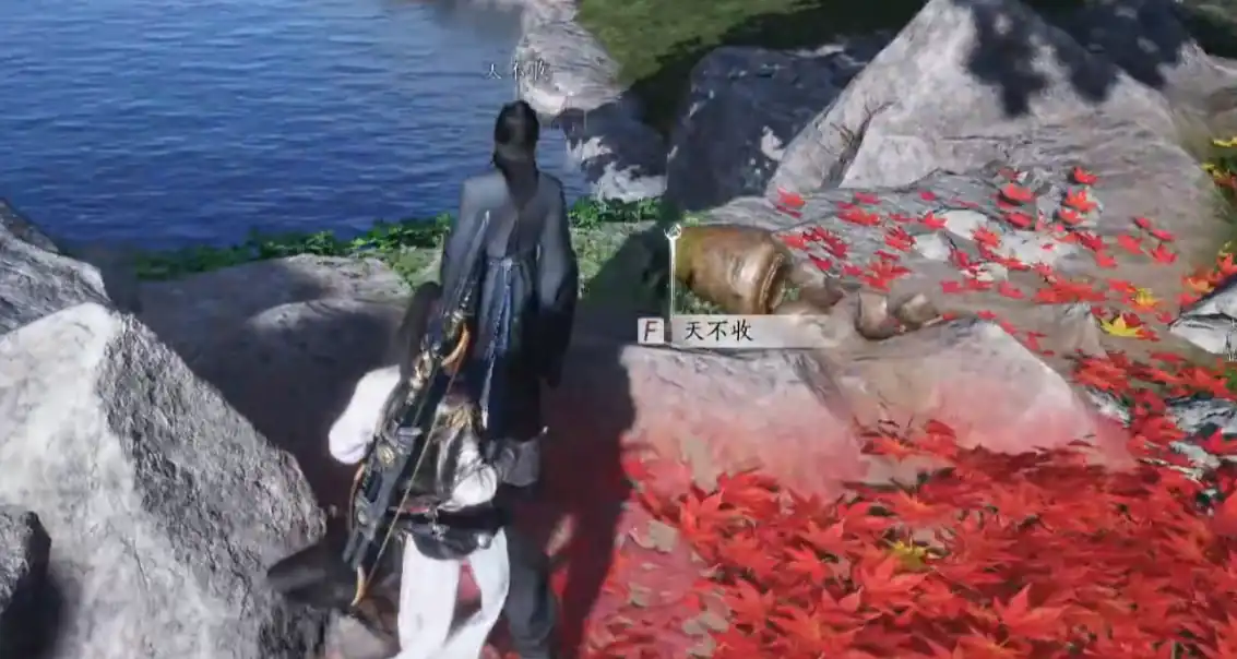 然后推开门发现已故的月神,帮助她完成心愿,从她身后的路下去找到其他的信封,并找到花和剑两个道具,花是在地上,剑则是在桌子上。返回月神处提交这2个物品然后触发剧情,月神消失,然后跟着任务提示来到一处缝隙处乘着船离开,顺带也就能得到这个燕云十六声红叶障目奇术了。