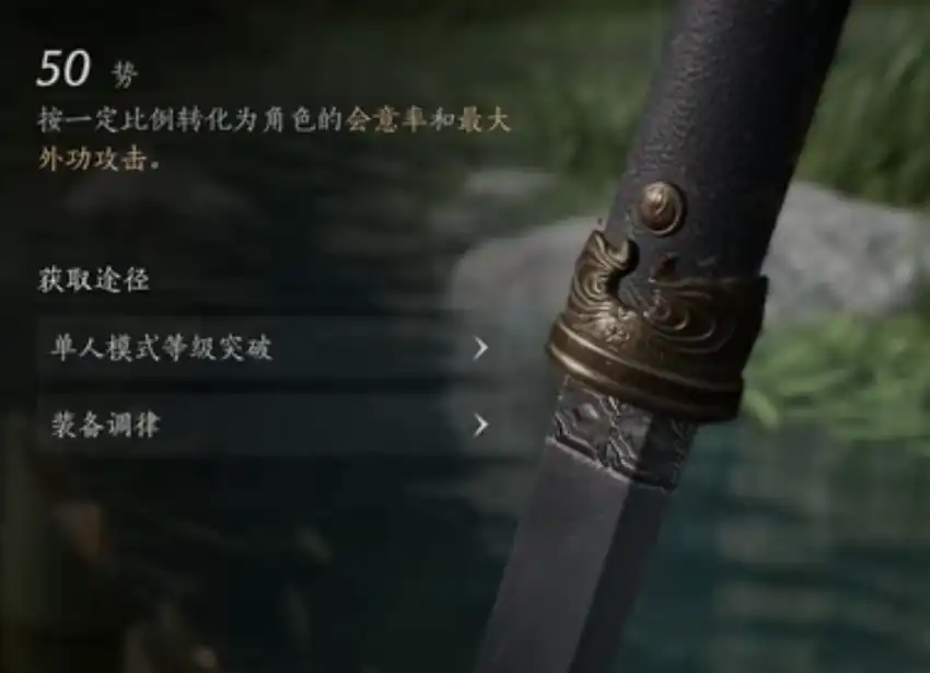 首先来看五维属性,这里的体会按照一定比例转变成角色的气血值,御会转化成“外功防御”和“气血最大值”,劲会转变成“外功攻击”,敏会转化为“会心率”和“最小的外功攻击”,势会转为“会意率”和“最大的外功攻击”。