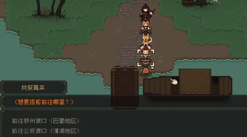 游戏里常规的地图都是可以自由探索的,玩家可以操控角色在地图上自由的行走,但在黑泥沼地图这里将会充满着危险,一旦玩家走错就会陷入到沼泽里,而且如果无法顺利通关黑沼泽的话,就没有办法继续后续的挑战,想进入黑沼泽的话,首先需要来到金军营地在这里和对手战斗,然后需要前往江陵地区,在这里可以去往码头搭船,要选择公安渡口,花费二十五文就可以直接坐船到达黑沼泽附近,然后沿着道路不断向前就可以深入黑沼泽的深处。
