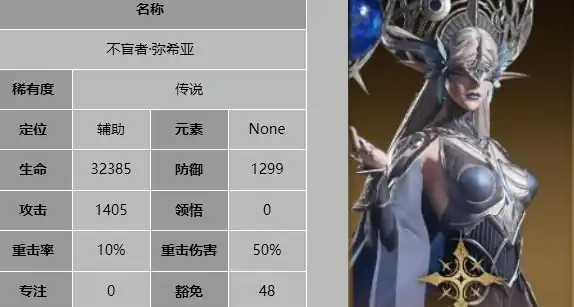 盲女这其实也就是大家所说的弥希亚,属于一个传说级别的辅助英雄,在团队的过程中就会起到辅助的作用,是团队中一个非常重要的支撑角色。