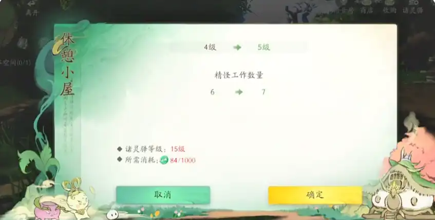 休憩小屋就是家园的其中一种建筑,这里面有很多的精灵,如果该建筑的等级越高,可以安排越多数量的精怪展开工作,想要提高生产效率那么该建筑就必须升级,升级也比较简单,只要消耗足够数量的货币就可以升级。