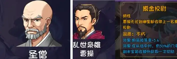 先来看T0阶段的两个主要角色,分别是曹操和金蝉子。曹老板再刷一把2当中的地位可谓是不可撼动,它不仅能够让玩家获得额外的奖励。并且在意图的加持下还可以大大提升伤害率,每次的三轮总输出甚至可以达到30万以上,在物品掉落上也能够达到非常不错的情况。