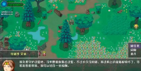 第三个任务是野兽森林玩家要在地图的左下角寻找到女猎人艾米,从他那里就可以接受到任务需要玩家在三轮的战斗当中获得五颗狼牙,五张熊皮,而且在最后一次战斗当中还有机会获得血牙之刺,等玩家通过这三层战斗的话就可以将名望升到二级,还能够从艾米那里获得推荐信。不过需要玩家将角色的十级天赋再加个火球术,这样战斗起来就会轻松很多。