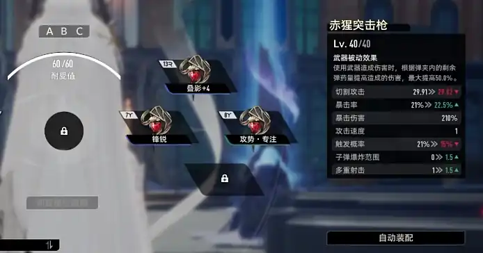 除了近战武器,扶疏还有一把令人称奇的远程武器赤猩突击枪,这把枪的造型充满科技感与力量感,当扶疏在战斗中使用赤猩突击枪打出伤害时,它会依据弹匣里面剩余的弹药量,对敌人造成的伤害进行相应的提升,随着弹药量的减少,枪械的威力反而会愈发强大,最高竟然能够提升50%的伤害,这一特性使得扶疏在使用远程攻击时,需要精准地把握好射击的时机和节奏。