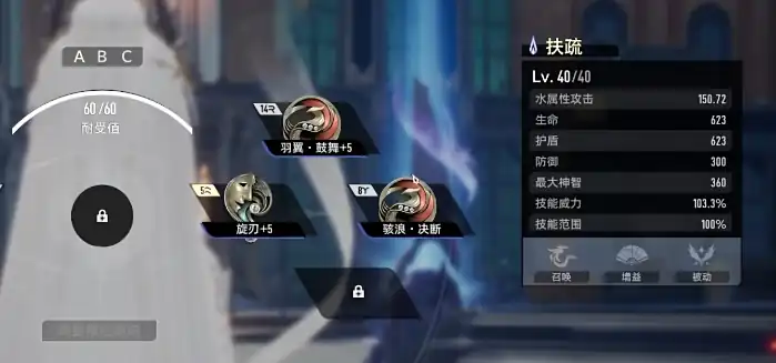 在激烈的战斗中她能时刻关注着队友们的安危,她独特的召唤技能提掣浮沉,当她在战斗中轻声念出技能咒语时,会有一个散发着柔和光芒的云璃缓缓浮现,这个云璃并非普通的存在,它拥有着神奇的力量,而且云璃最多可以同时存在两个,它们如同扶疏的得力助手,随时准备听从她的召唤,为队友们提供支援,扶疏的被动技能神归心舍更是体现了她作为治疗型辅助角色的独特魅力。