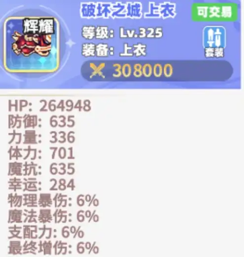 当然如果大家已经凑齐了精力和侥幸属性的装备,那也是不错的选择,虽然精力能带来较高的战力加成,但在输出上它却难以与力气相提并论,尽管防守套能带来高额的战力加成,但其较低的输出能力却让人望而却步,因此在选择防具时大家不仅要看中其防御能力,更要考虑其对输出的影响,在金饰的选择上同样不能掉以轻心,一套强化均匀、直至+10的金饰,将是大家战斗中的得力助手。