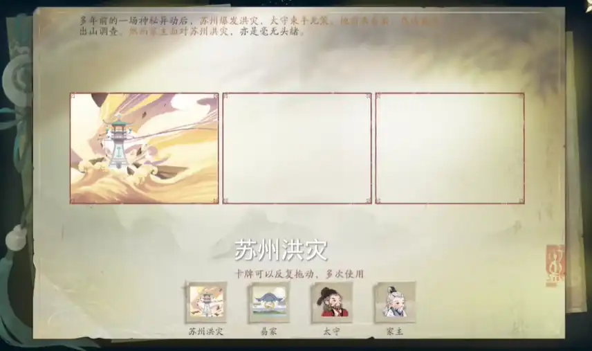 解读神秘书册任务顺序为“太守”“太守和家主”“家主”,破解迷宫任务类似一笔画,要一次性走完所有不发光的地板,还原未了书的故事任务正确顺序是“水患源头+家主”“湖底封印+家主+大鱼”“易家+大鱼+家主”,还原残缺壁画任务第一块在壁画右边,第二块在壁画后边的走廊,第三块在屋顶,最后使用幻魅残卷,将其与场景中的对应位置匹配,到这里任务就结束了。