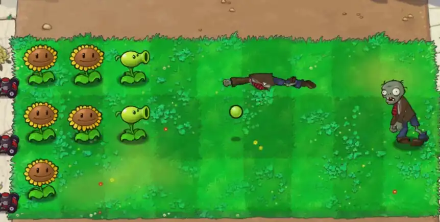 期间如果有条件的话,可以在倒数第三排也种一些产阳光的植物再次提速,至于最后一排,这里千万不要种植这种类型的植物,因为这模式关卡中的僵尸也是随机的,并不是固定的,有一些僵尸是会直接来到最后一排的,万一遇到了这种僵尸,那在最后一排放产阳光的植物就是白给,因此需要留位置,在这一排去放置一些可以阻挡后排僵尸的植物。