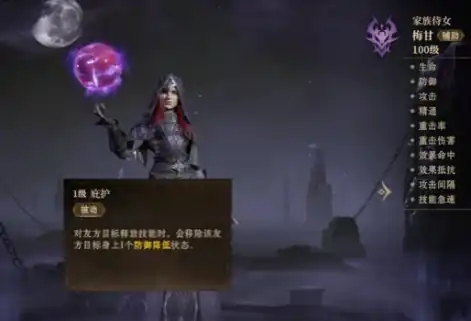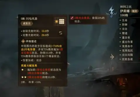 他的被动能在对敌人形成输出值时,有30%概率让其降低25%的攻击,持续5秒,他的战技会对敌人形成250%攻击的毒伤并减少其25%的威能,他的威能技可以对范围内的敌人形成720%攻击的毒伤,并且有75%几率对其中生命值高于50%的敌人施加减疗状态10秒,还有75%几率直接施加禁疗状态。