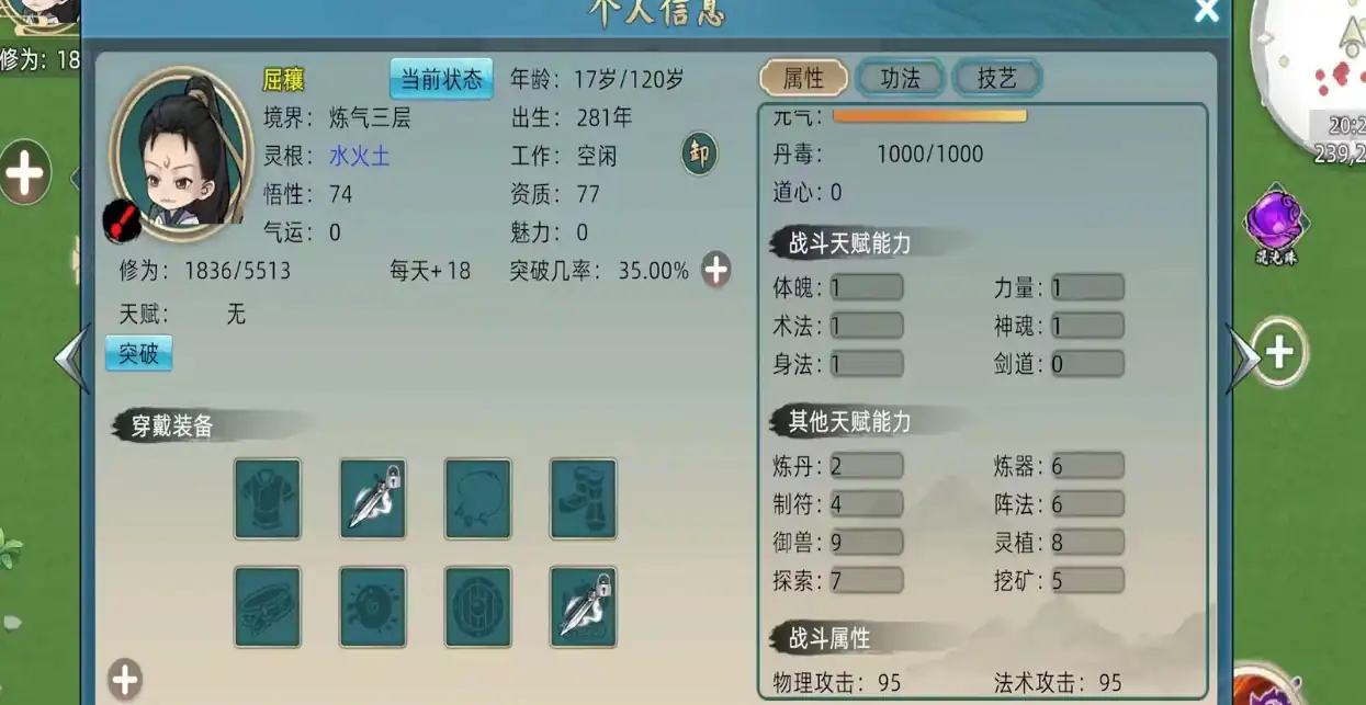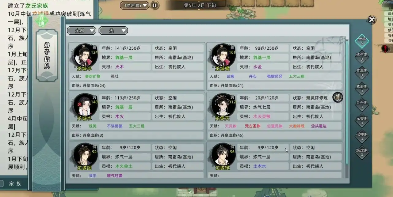 玩家开局可以很多存档,然后寻找有天灵根的弟子,因为他们有潜力,并且修炼速度很快,可以为家族贡献更多的功德点。与此同时,如果玩家在开局时可以拿功德点兑换天赋的话,一定要优先选前期发展势头好的天赋。