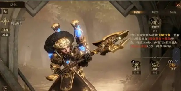 接下来说说她的群体目标眩晕技能,简直是打乱敌人节奏的神器。当这个技能触发时,敌人不但会被控制无法行动,甚至会附加一个伤害减免的debuff。这意味着敌人的攻击力会大幅下降,而且无法进行有效反击。想要拖延敌方技能释放,或者保护队友免受伤害时,群体眩晕就是你最佳的选择。