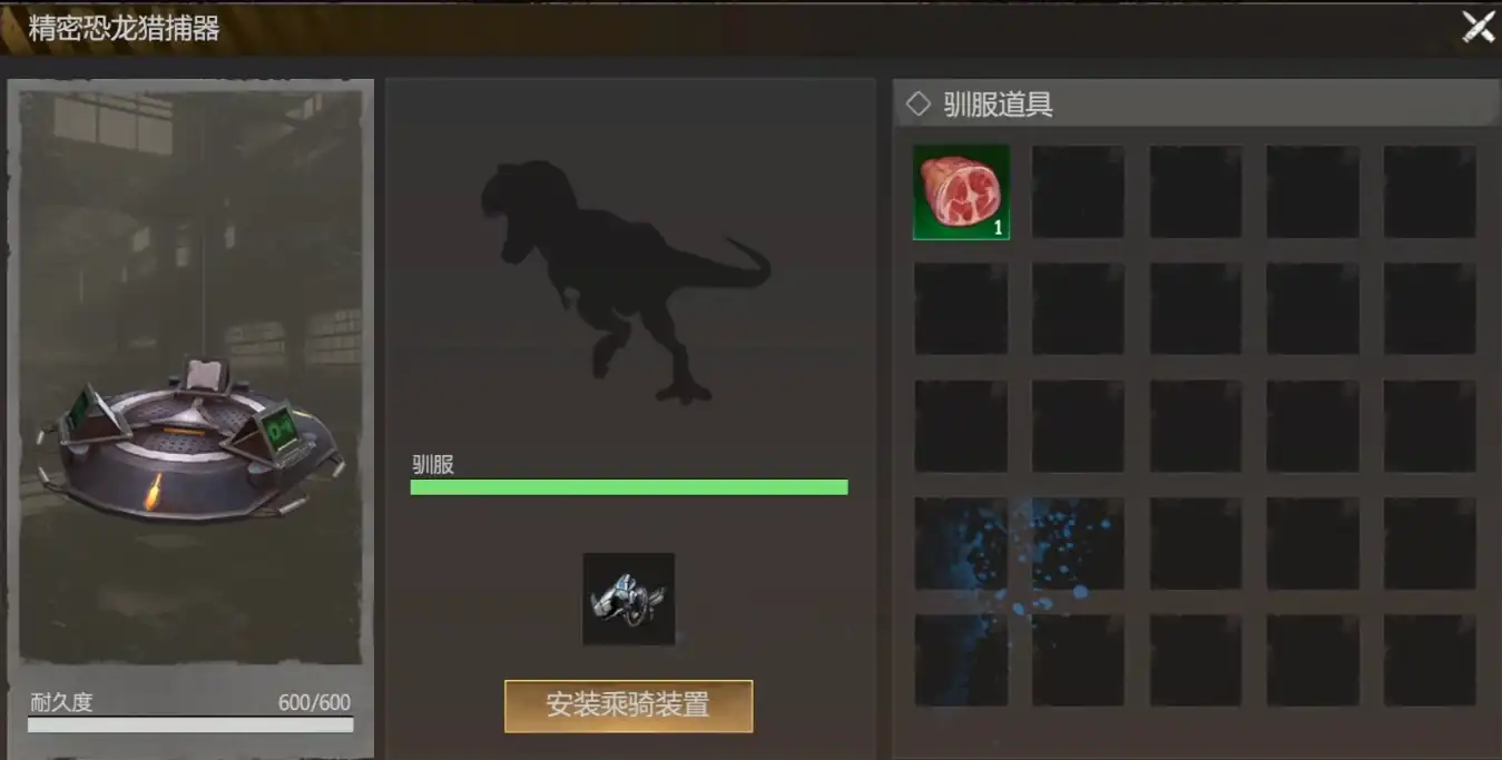 这个时候会弹出驯服的窗口,我们只要将肉给喂给它,最后按照好乘骑装置就算抓捕成功了,后续可以召唤它出来乘骑,如果想要发电的话,一定要记得捕捉副栉龙,只有它才可以进行发电。