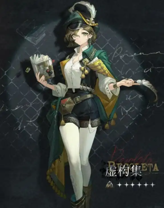 除了技能,虚构集的外形也非常有魅力。她那一头碧绿色的短发和墨绿色的衣服,显得既清新又充满智慧感。她手中拿着一本书和羽毛笔,看上去似乎是个非常沉迷于阅读的角色。不过,千万别被她外表的温文尔雅给迷惑,战斗时,她的威力可是丝毫不含糊。