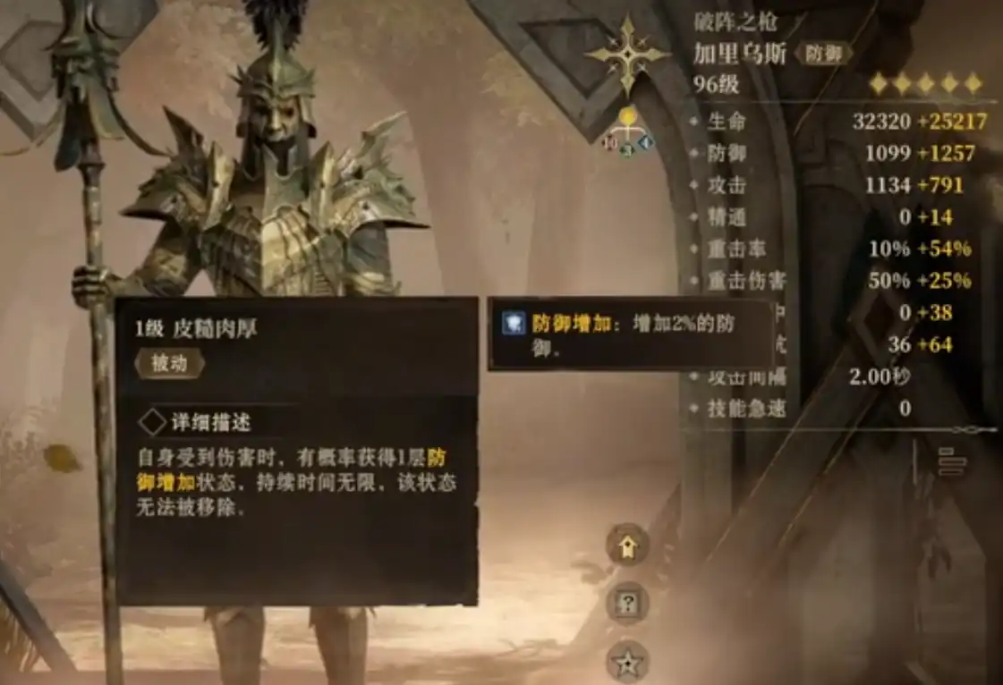 他的被动能在自身受到伤害时,有一半几率增加2%的防御,持续时间无限并且无法被移除,最多可以叠加20层也就是增加20%防御,他的战技会对目标形成400%防御的光伤,并且100%几率击飞该目标,此后对自身施加受击回复10秒,他的威能技会移除自身所有的减益,并对所有的队友进行一次治疗。
