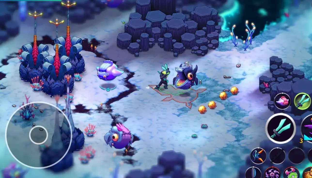 《崩溃大陆2》是一款采用了2.5D画面为玩家渲染魔幻开放大世界的角色扮演游戏,游戏的故事发生在奇幻的宇宙之中,玩家需要利用自己的走位,不断挑战宇宙内存在的各类神秘生物,这些神秘生物可能会掉落物资装备,也有可能会掉落成就奖励,游戏前期,玩家将进入到一个暗无天日的世界内,需要不断的收集地面上残留的资源,打造生存物资,例如斧头亦或是长矛等等。