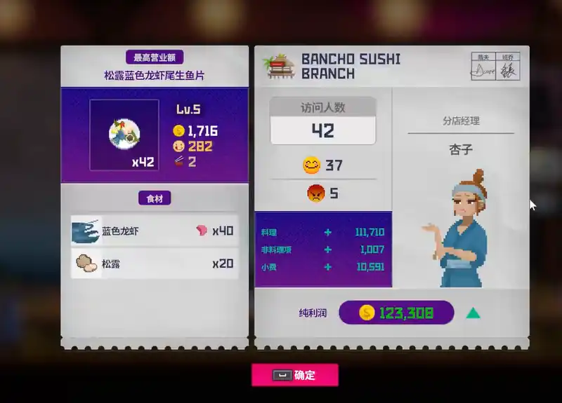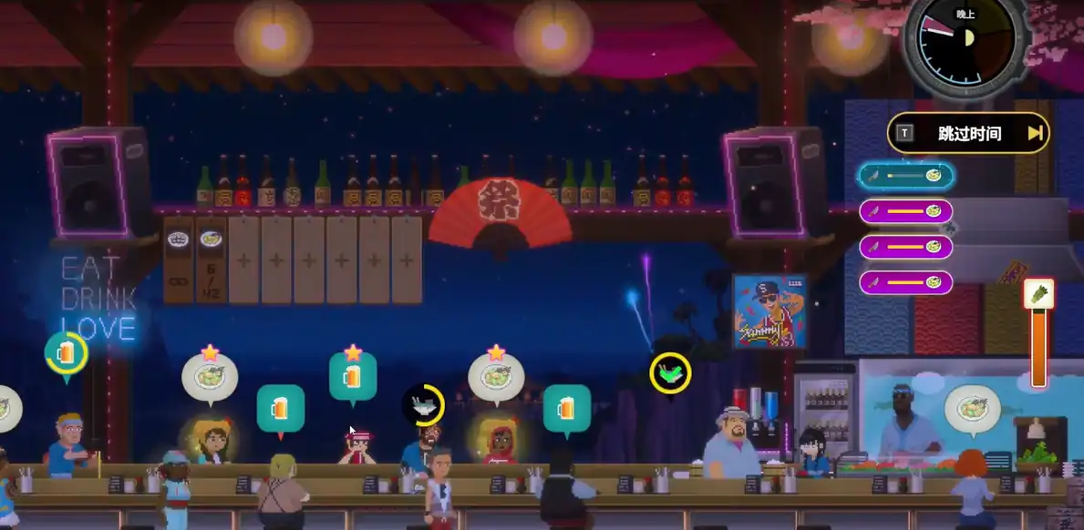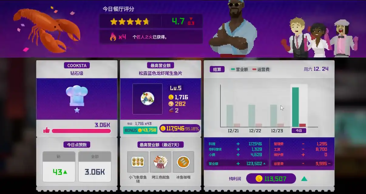 在派对的这几天,顾客们会源源不断地进店,尝试你的龙虾美味,这时候你的任务就是让每一道菜都足够诱人、足够完美。如果操作得当,派对结束时,店里的收益会是平时的数倍,赚到手软不在话下!