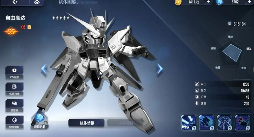 2、命运高达:这个高达也可以说是比较全面的高达类型了,它的技能特点就是强力输出。在这个高达卡牌上阵时,在阵容搭配上建议选择一些能有较好表现的近战型高达;