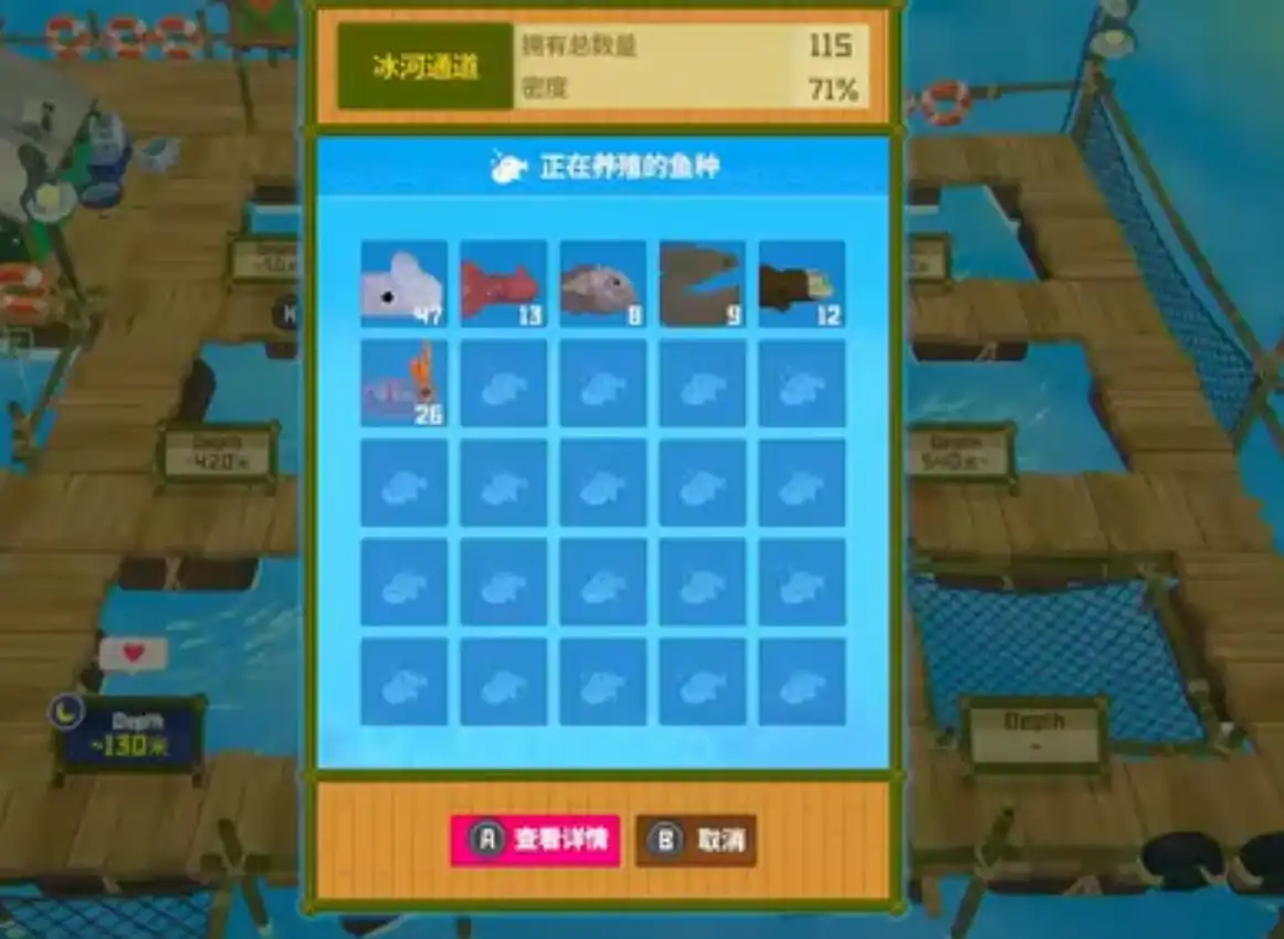 玩家在养鱼之前要先在海洋里获取鱼卵,来进行培育,戴夫的鱼塘很大,分为九个不同深度的鱼塘,玩家可以根据鱼卵的种类来进行投放到合适的鱼塘中。