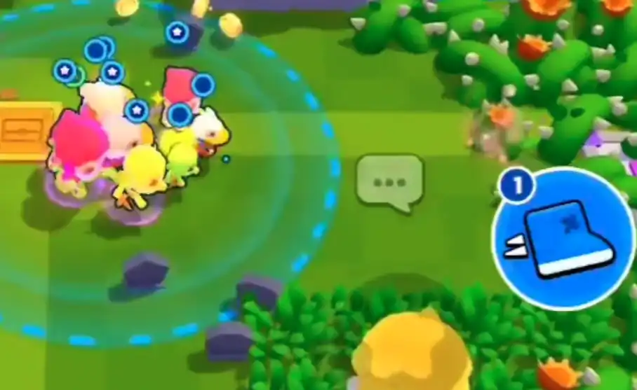 在刚开始落地的时候咱们的出生点附近会有一个蓝色的箱子。这个箱子里面是有着一些金币和一个加速道具,虽然里面的物品很不错但是打破需要一定的时间,这会耽误咱们的发展,所以建议玩家们等获取到2-3个角色之后再来打破这个箱子。