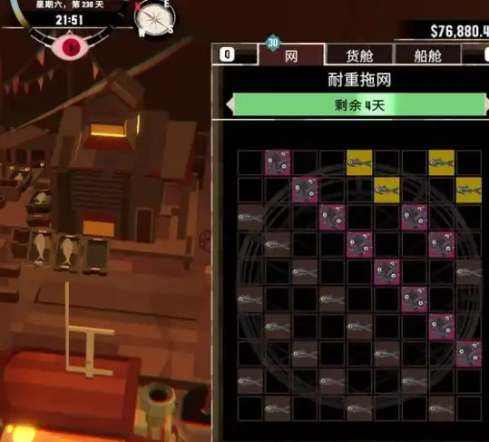 拖网是比较简单的,大家直接购买之后就可以安装了,然后到地方使用技能就可以把它放下之后就可以捞到鱼,并且通网捉到的是不会占用大家的背包空间的,所以非常的划算,而且鱼会一直新鲜,不会像钓鱼一样花钱。