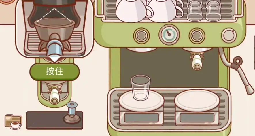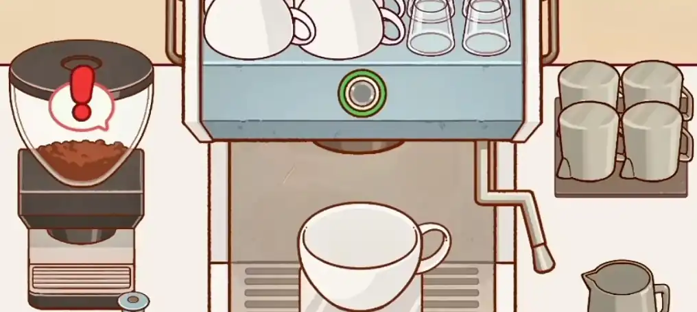 当在制作咖啡时,咖啡机上出现了红色感叹号,就是意味着咖啡豆不够了,长按装置咖啡豆部分就能进行咖啡豆的补足。想要尽快升级咖啡机就要仔细研究已经开发了的食谱内容里的各种咖啡或者是饮品的制作过程,尽可能的满足每位顾客的需求,达成每日最高的营业额。