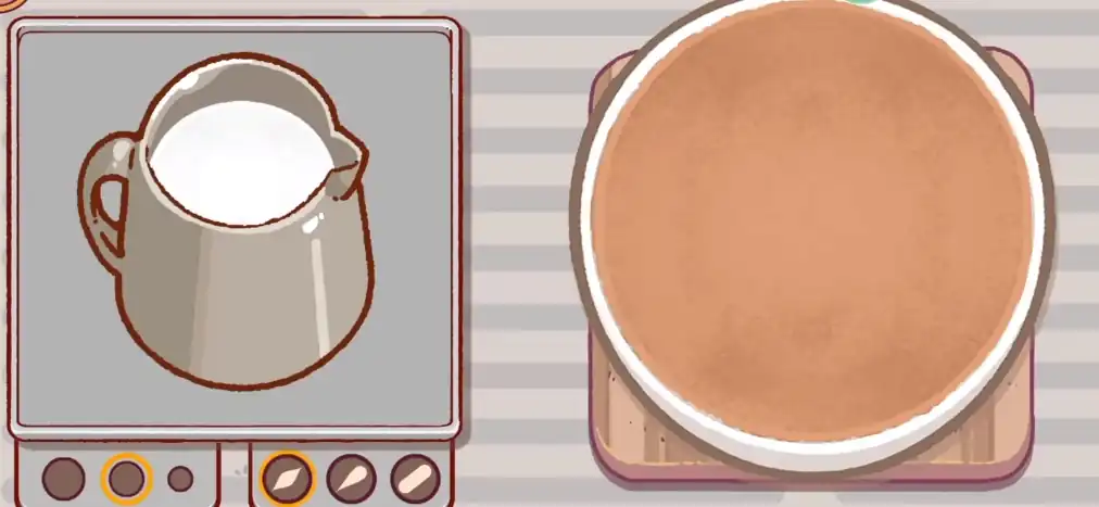 解锁了牛奶这个食材道具之后,就能在咖啡的制作上增加拿铁咖啡这个大类,这个类别能根据材料做出多种咖啡种类。不过在咖啡的最后一步会需要拉花,想要拉出好看的牛奶花,还是需要一点艺术基础的。