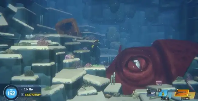 首先是喷墨,大王鱿鱼会喷出大量墨水,将玩家抛到远处。虽然这一技能不会直接造成伤害,但它会打乱玩家的攻击节奏,使得后续的攻击难以连贯进行。其次是触手攻击,大王鱿鱼会在特定位置召唤触手,并在触手出现前会有黑烟冒出。玩家需要迅速向相反方向游动,以躲避触手的攻击,否则被击中将会造成大量生命值损失。
