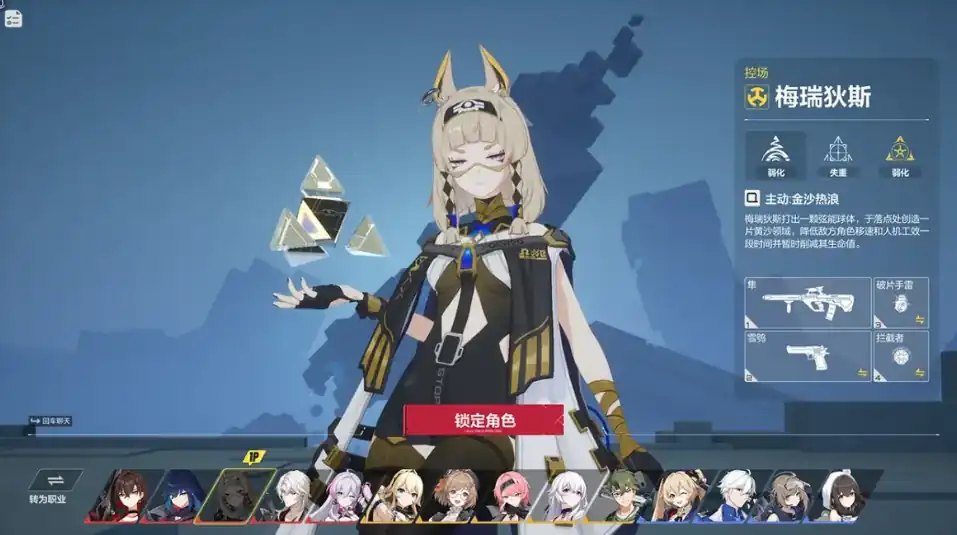 在这款游戏当中,由于涉及到的角色特别的多,下面就简单分享一下剪刀手阵营里面的角色。作为领袖人物的梅瑞狄斯,他使用的武器是金字塔,他的技能能够削减敌人的生命,也能够降低敌人的速度。如果梅瑞狄斯的主动技能觉醒之后,能够有效地阻隔视野,还能够当成烟雾弹来使用。