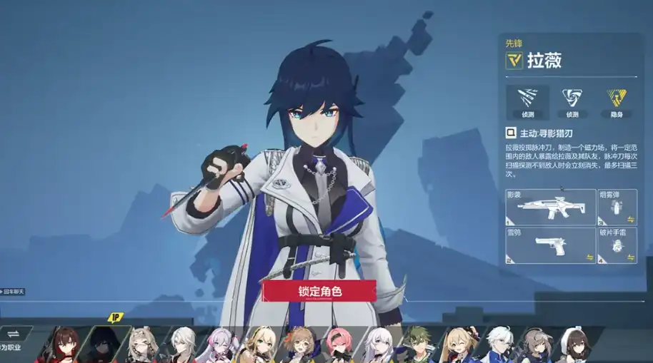 拉薇这个角色作为整个队伍当中的先锋所在,主武器是隐形,是一种轻型的武器,后坐力特别的小,虽然说拉薇的主武器伤害性特别的低,但是他的主动技能特别的重要,所以他在整个队伍当中地位是比较高的,而玩家选择这个角色的时候,要选择合理的搭配烟雾弹等等道具。