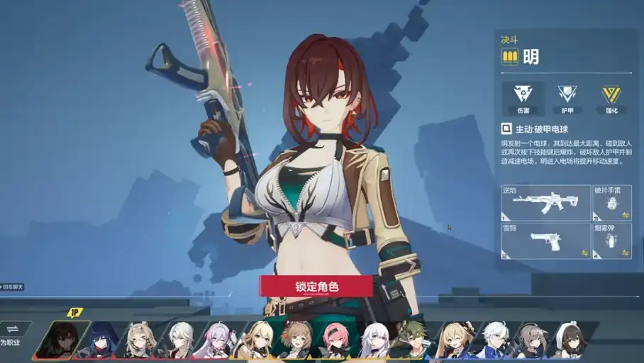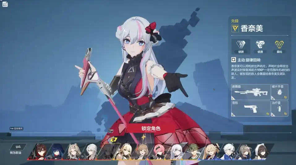 其实在这个阵营里面还有一个使用大狙步枪的香奈美,他的q技能是能够通过大局射出子弹,这样就会生成一个探测圈,一旦形成之后,圈里面的敌人都会暴露,而它释放大招的时候能够制造舞台区域,在这个区域内的敌人就会出现减速的情况。
